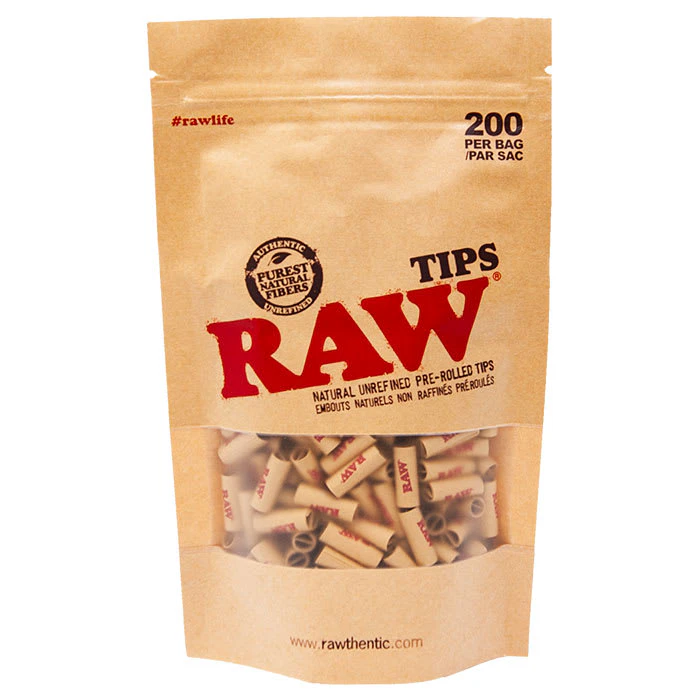 RAW PRE-ROLLED UNBLEACHED TIPS BAG OF 200 CHLORINE AND CHEMICAL FREE